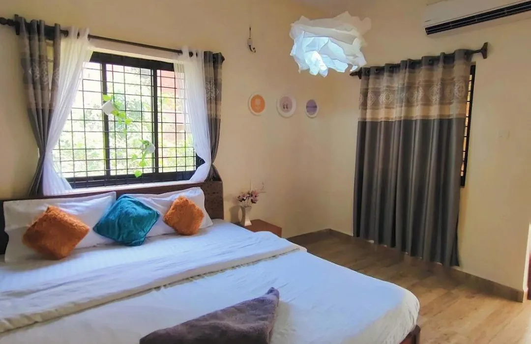 2Bhk Villa - Calangute comes with a bathroom with a bidet, a roll-in shower, and a sink. A hair dryer, bathrobes, and a shower cap are included to enhance your comfort.